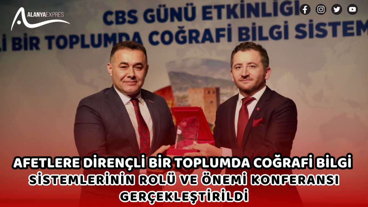 CBS Günü Etkinliği ‘Afetlere Dirençli Bir Toplumda Coğrafi Bilgi Sistemlerinin Rolü ve Önemi’ Konferansı Alanya Kültür Merkezi’nde gerçekleştirildi. Programa Alanya Kaymakamı Fatih Ürkmezer, Alanya Belediye Başkanı Adem Murat Yücel, Alanya Alaaddin Keykubat Üniversitesi Rektörü Prof. Dr. Kenan Ahmet Türkdoğan, Alanya Üniversitesi Rektörü Prof. Dr. Mesut Güner, Alanya İlçe Jandarma Komutanı Binbaşı Hüseyin Direk, Harita ve Kadastro Mühendisleri Odası Genel Başkanı Ali İpek, Kandilli Rasathanesi ve Deprem Araştırma Enstitüsü Müdürü Prof. Dr. Haluk Özener, TÜBİTAK Marmara Deprem Araştırma Merkezi Başkanı, İTÜ Öğretim Üyesi Prof. Dr. Burcu Özsoy, Alanya Alaaddin Keykubat Üniversitesi Rafet Kayış Mühendislik Fakültesi İnşaat Mühendisliği Bölüm Başkanı Prof. Dr. Mustafa Ümit Gümüşay, Akdeniz Üniversitesi Fen Fakültesi Uzay Bilimleri ve Teknoloji Bölümü Uzaktan Algılama Anabilim Dalı Başkanı Doç. Dr. Nusret Demir, Harita ve Kadastro Mühendisleri Odası Antalya Şube Başkanı Okan Hançer, Harita ve Kadastro Mühendisleri Odası Antalya Şube 2. Başkanı Serter Kocababa, Alanya Belediye Başkan Yardımcısı ve Harita Kadastro Odası Alanya Temsilcisi Abdullah Akbaş, Harita Kadastro Odası Antalya Şube CBS Komisyon Başkanı Mehmet Doğan, Alanya Ticaret ve Sanayi Odası Başkanı Eray Erdem, Alanya Turizm İşletmeciler Derneği Başkanı Burhan Sili ve çok sayıda akademisyen ile vatandaş katıldı.