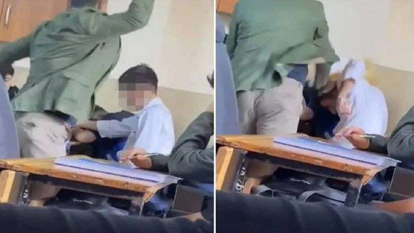 Beylikdüzü'nde öğrencisinin başına kitapla vurduğu anlara ait görüntüler ortaya çıkan öğretmen, öğrencinin ailesi tarafından saldırıya uğradı.
